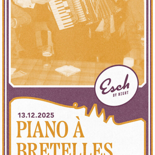 Afficher le planOn se rencontre, on rigole, on danse… là où on se sent bien : au café du coin. « Métropole du fer », Esch-sur-Alzette a longtemps été réputée pour ses cafés animés. On y venait de tout le pays et au-delà des frontières pour faire la fête. Esch by Night vous plonge dans l’effervescence sociale et musicale de cet âge d’or. Dans les cafés eschois, 6 soirées reviennent à ces moments de joie intense, de l’accordéon au bal électronique, en passant par le swing, le rock et le hip-hop. La deuxième soirée se place sous le signe de l’accordéon, dans un café historique du centre d’Esch : la Taverne Battin. Au programme : discussion, danse (musette, funaná…) et jam-session ouverte aux musicien·nes. Symbole du bassin minier luxembourgeois, cet instrument se frottera aussi, pour l’occasion, aux sonorités venues du monde entier. Parmi les intervenant.e.s, nous avons le plaisir de compter sur la participation, entre autres, de Daniel Pagliarini, chef d’orchestre des “Amis de l’Accordéon”, et Catherine Hengesch, éducatrice et musicienne menant le projet pédagogique “Museksgart” à Dudelange. Esch by Night est un projet du Escher Theater en collaboration avec l’historienne Laura Steil.
