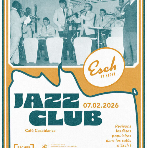 Afficher le planOn se rencontre, on rigole, on danse… là où on se sent bien : au café du coin. « Métropole du fer », Esch-sur-Alzette a longtemps été réputée pour ses cafés animés. On y venait de tout le pays et au-delà des frontières pour faire la fête. Esch by Night vous plonge dans l’effervescence sociale et musicale de cet âge d’or. Dans les cafés eschois, 6 soirées reviennent à ces moments de joie intense, de l’accordéon au bal électronique, en passant par le swing, le rock et le hip-hop. La troisième soirée Esch by Night met en lumière l’histoire du jazz luxembourgeois. Dès les années 1920, des jazz-bands se produisent dans les bals eschois, puis dans les années 1950, le Jazz Club d’Esch (JCE) est particulièrement renommé. Le jazz reste populaire aujourd’hui sous la forme de danses comme le lindy-hop. Au programme : discussion, cours de danse swing animé par Swing Dance ASBL, et jam-session jazz avec le Pol Belardi & Band ! Esch by Night est un projet du Escher Theater en collaboration avec l’historienne Laura Steil.